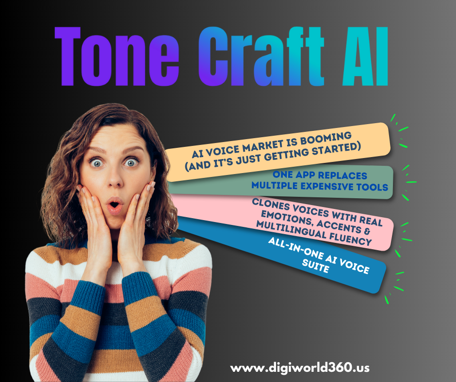 Tone Craft AI creates ultra-realistic emotional voiceovers in 2,000+ voices and 210+ languages—complete with human-like emotions, real accents, and natural tone—in just 60 seconds.